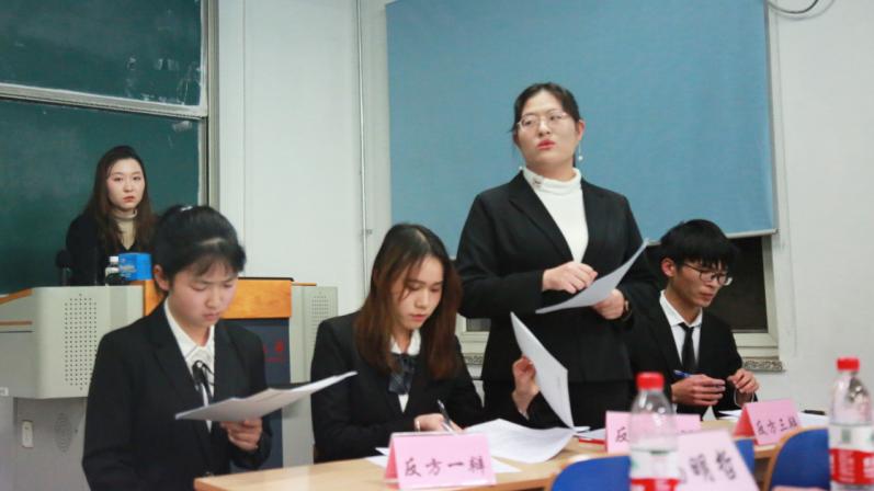 开篇立论环节,正反双方辩手陈述条理清晰,金句频出,阐释己方观点,解释论题内涵。既体现了文法学子出色的思维能力,也展示了北科求实鼎新的校训精神。