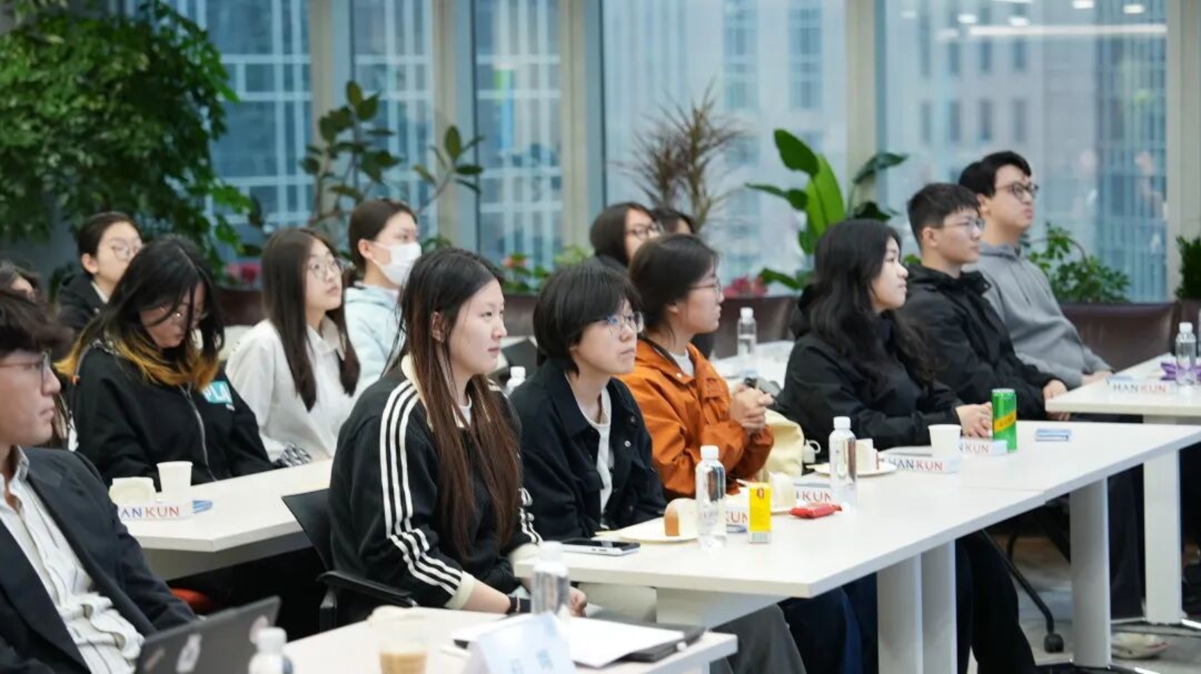 汉坤律师事务所人力资源部负责人池男秀详细介绍了律所在知识产权、金融资管、数据合规等新兴领域的业务布局,重点强调了"技术+法律"复合型人才的行业稀缺性。主题分享环节,知识产权部任翊及金融资管部杨武、裴智浩三位资深律师结合实务经验为学子们指明职业发展方向。交流环节,师生们围绕人才培养、职业规划等议题与律所专家深入探讨。