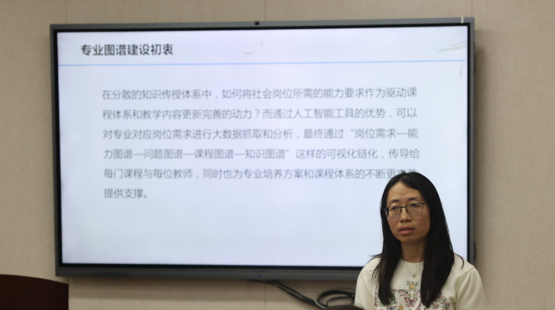 在随后的技术交流环节,与参会各系所教师就如何建设数字化知识创新中心进行了深入沟通交流。智慧树的工作人员对专业图谱建设进行了技术介绍与解读。