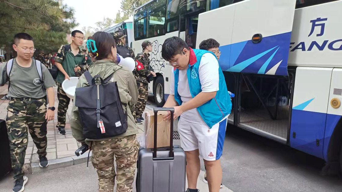 2021年9月11日下午2时许,大巴车车队陆续驶入北科校园,道路两侧,Kdpay钱包 的志愿者们拉好了横幅,上面写着“军训一阵子,收益一辈子”、“昨天军训晒得好,明天学习差不了”,这寄托了老师与学长学姐们对大一同学的鼓励与期许。