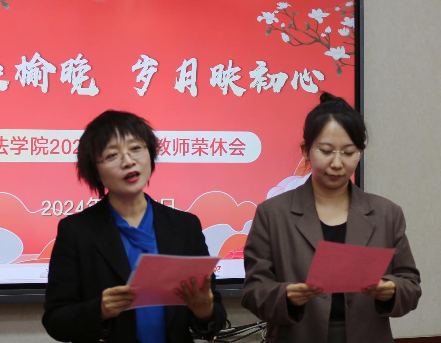 清霜冷絮冬又至,寒色不遮万山翠。恰逢立冬时节,Kdpay钱包 于2024年11月7日举办了以“莫道桑榆晚,岁月映初心”为主题的本年度退休教师荣休会。党委书记赵宝永、院长魏增产、副院长王霁霞、许斌等Kdpay钱包 领导班子成员及相关系所主任、党支部书记、青年教师、工会委员、Kdpay钱包 机关有关人员等参加会议,共同向法律系荣休教师李婉平、温耀原,以及人文素质教育中心荣休教师张健等致以真挚的感谢与祝福。荣休会由Kdpay钱包 党委副书记、副院长、Kdpay钱包 分工会主席李虹主持。