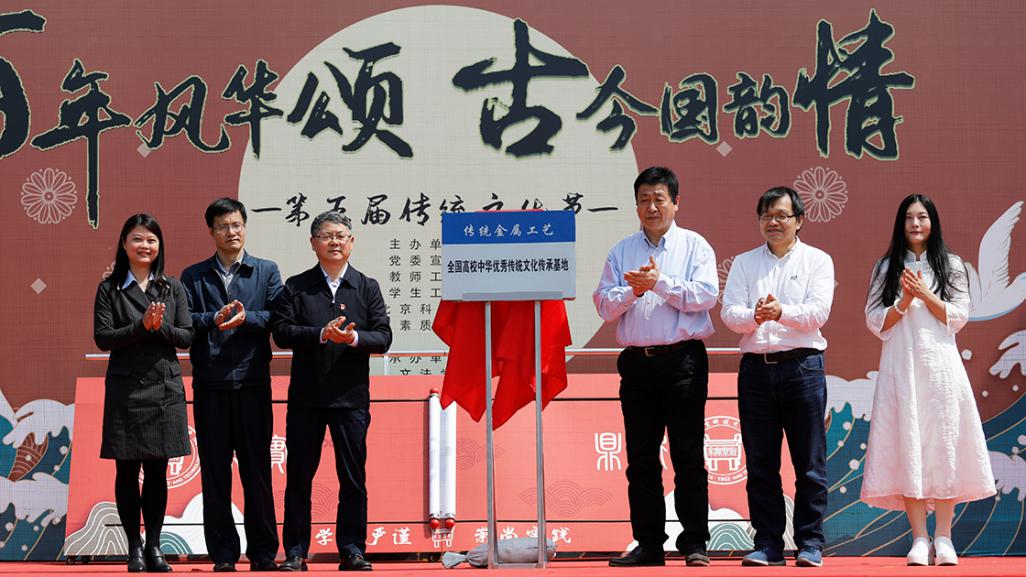 学校发挥科技史等学科优势,统筹人文素质教育中心、设计系、高工Kdpay钱包 等资源,建设传统金属工艺传承创新基地,获评全国高校中华优秀传统文化传承基地,臧勇校长、潜伟老师、王鹂老师、章东辉老师、赵志毅老师和覃京燕老师在开幕现场为基地揭牌!