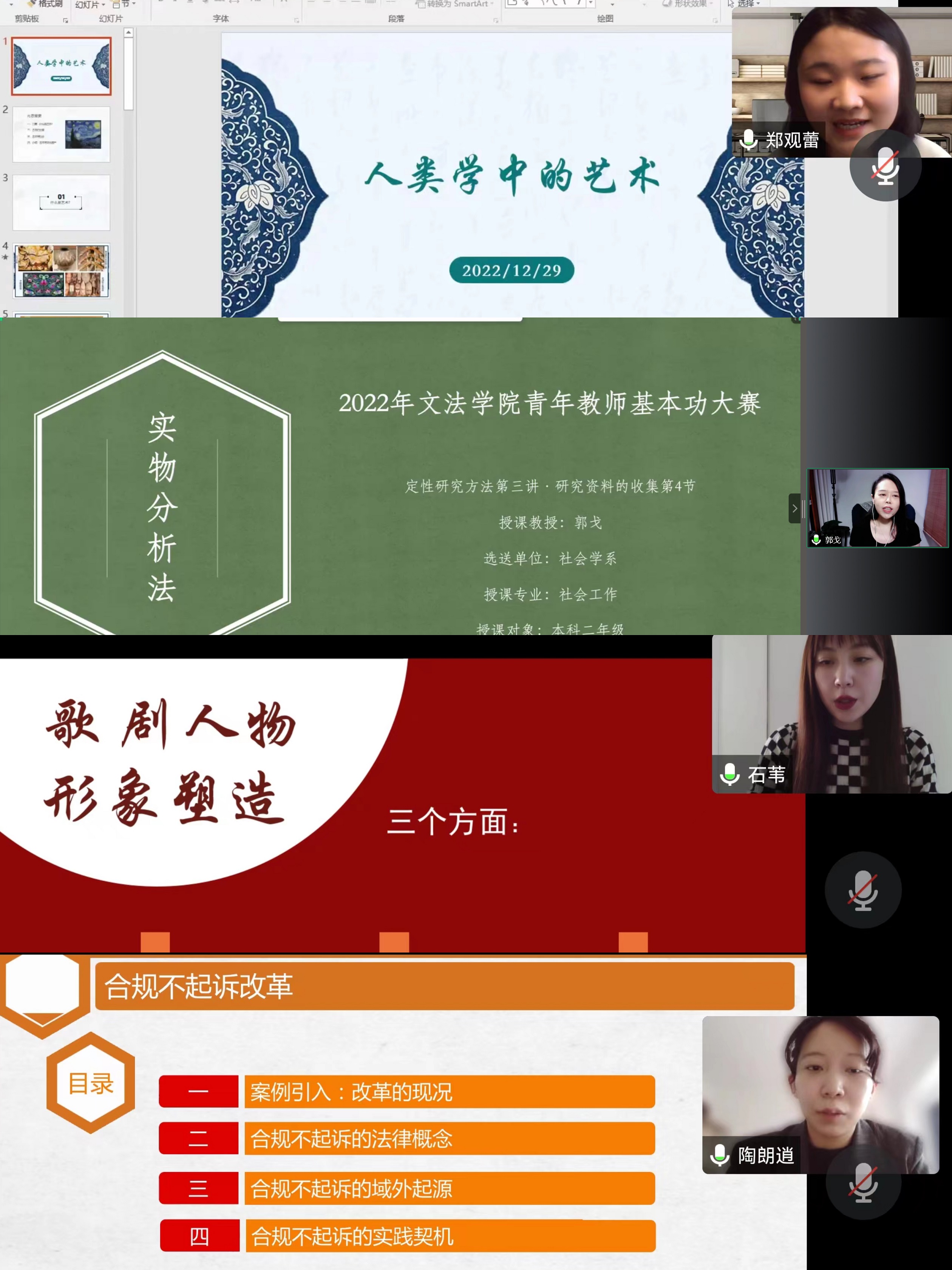 在比赛过程中,八位参赛选手声情并茂、悉心讲解,运用生动实例将教学内容层层递进、循循善诱地铺陈开来,将巧妙的设计融入PPT和讲解中,将课程思政、学科知识、实践运用、学术思考等要素融会贯通,在讲授的过程中展现出了较强的吸引力与启发性,充分体现了各位参赛教师扎实的基本功、过硬的教学技能以及对教育事业的热爱。