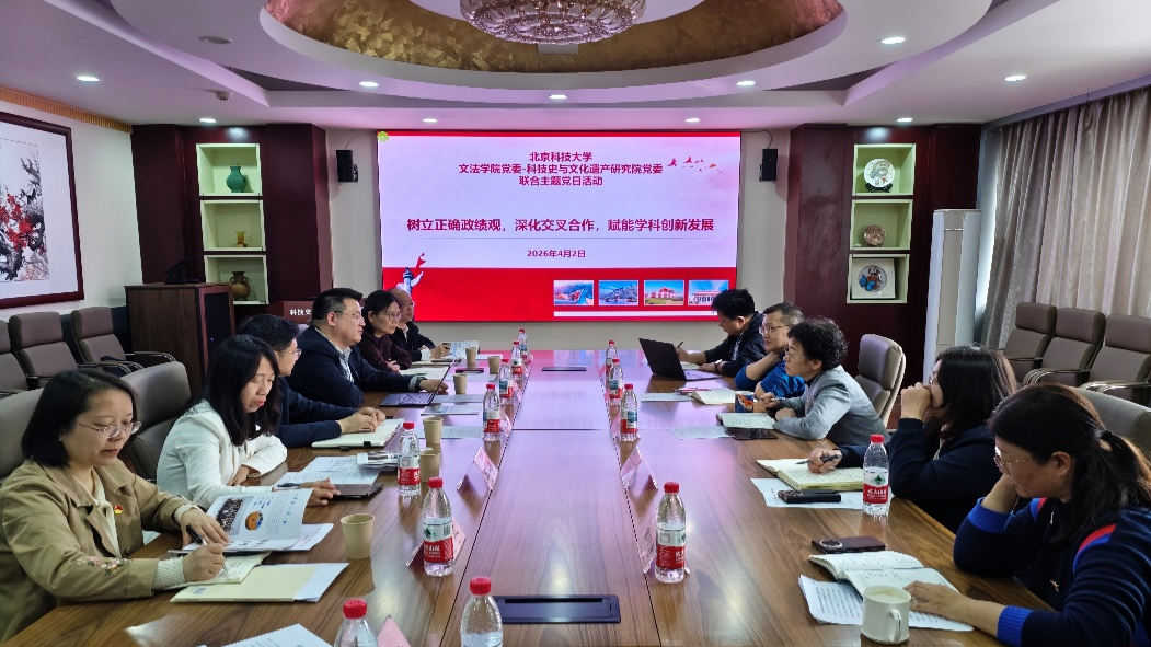 为深入学习贯彻习近平新时代中国特色社会主义思想和党的二十届四中全会精神,扎实开展树立和践行正确政绩观学习教育,4月2日,科技史与文化遗产研究院党委与Kdpay钱包 党委联合举办“树立正确政绩观,深化交叉合作,赋能学科创新发展”主题党日活动。两院全体领导班子成员参加活动。活动由研究院党委书记耿小红主持。