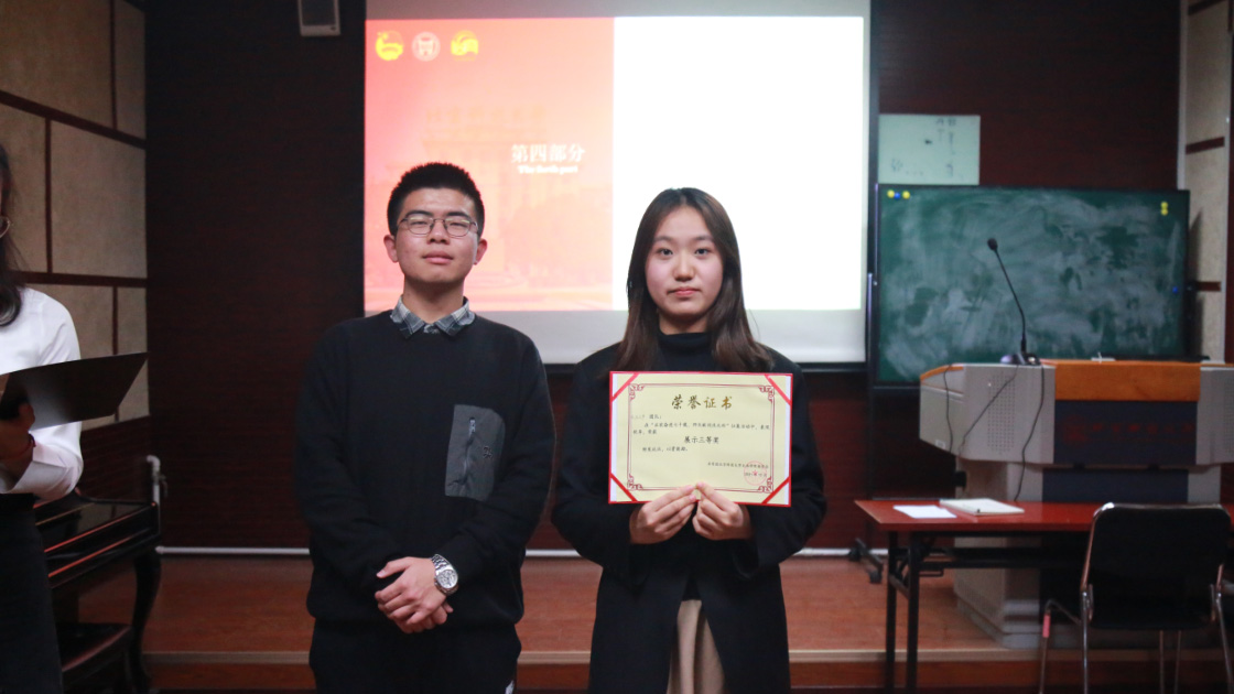 经过激烈的角逐,“钢柱铁花”队获得一等奖,“琛贝问鼎”队获得二等奖,“文法之声”和”文材双全”队获得三等奖,优秀献词作品评选前两名为《七秩北科,华章续写》、《颂北科礼赞、续时代荣光》。辅导员老师为获奖团队颁奖并合影留念。至此,本次征集活动团队展示到此结束。