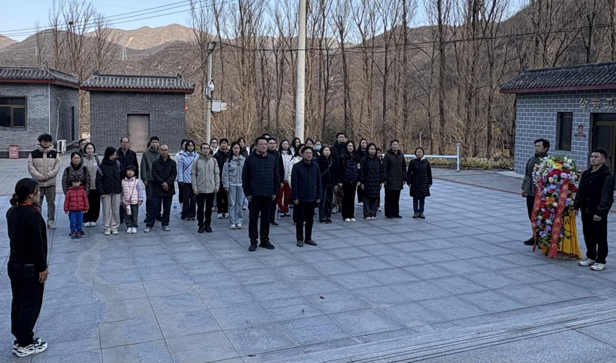 全体教职工首先来到高崖口革命烈士纪念碑前,庄重敬献花篮,默哀缅怀为民族解放事业英勇牺牲的革命先烈,向其致以最崇高的敬意。