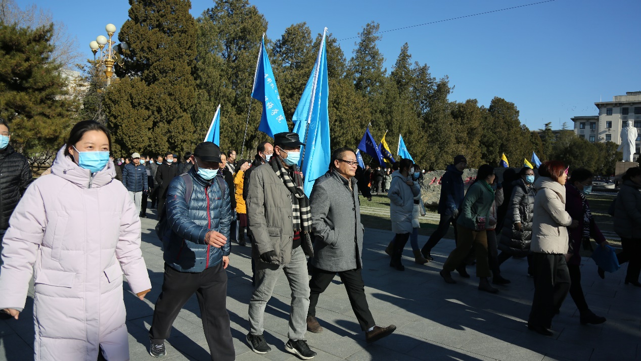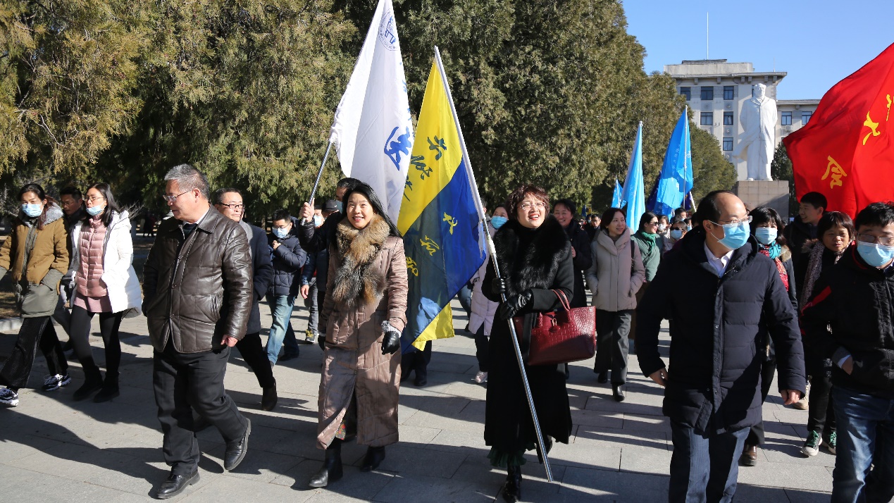 教职工队伍从毛主席像前出发,沿着指定路线开始行进。领导、老师们精神抖擞,迈着矫健的步伐,阔步行走在校园中。大家脸上洋溢着欢快的笑容,享受着健康运动带来的身心愉悦。全校各部门教职工组成浩荡长队,人潮涌动,形成了一道动人的美景,展现出我校教职工积极向善向上的精神风貌。