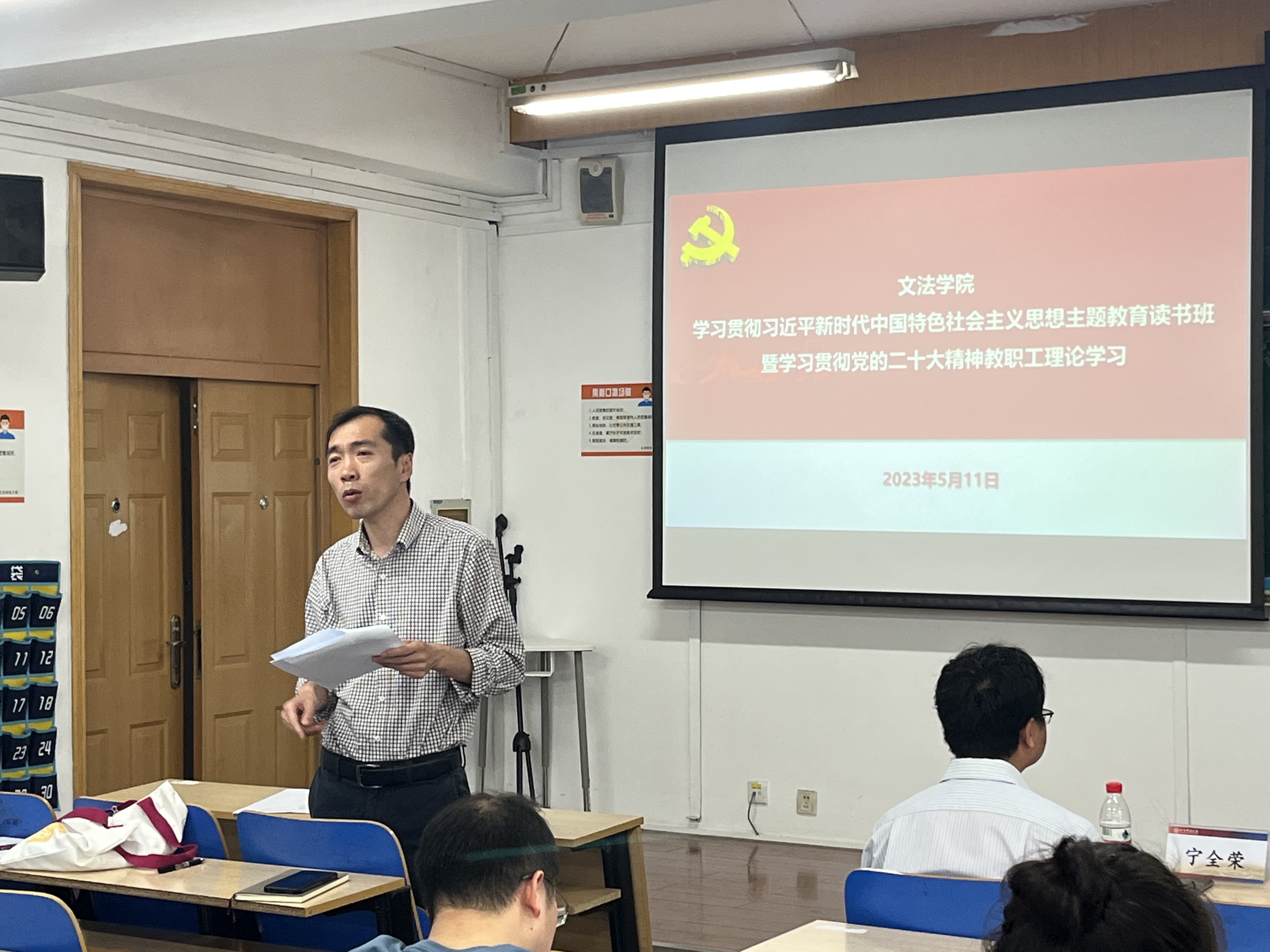 2023年5月11日下午,Kdpay钱包 党委在文法楼301召开了学习贯彻习近平新时代中国特色社会主义思想主题教育读书班暨学习贯彻党的二十大精神教职工理论学习会,党委书记史立伟、党委副书记李虹、王旭出席会议,会议特别邀请到Kdpay钱包 理论学习导师、马克思Kdpay钱包 宁全荣老师做专题讲座,Kdpay钱包 全体教职工参加本次大会,会议由Kdpay钱包 党委副书记王旭主持。