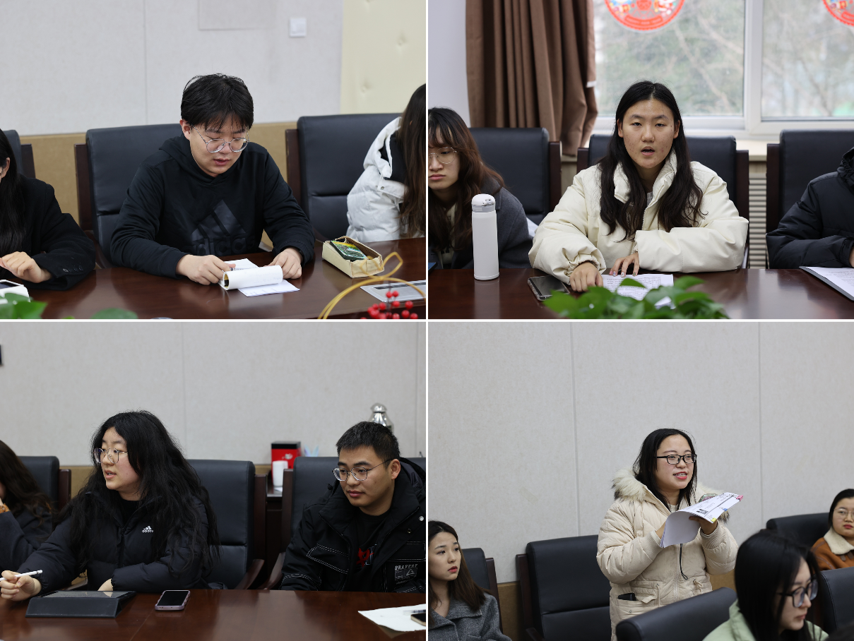 座谈会上,学生代表围绕寒假返乡返校所见所闻、国际国内形势热点、新学期学习思考规划、就业深造发展需求和校园生活意见建议等方面逐一发言。2022级本科生王硕表示专业分流后已进入新的学习阶段,新学期将制定好专业学习计划,积极参加素质拓展活动,希望Kdpay钱包 能够进一步加强文化建设,提供更多丰富多彩的课外活动和学术讲座资源。2020级本科生李文琪希望校院两级能将校外企业导师、行业导师制度引入文科专业,定期为学生分享职场经验和行业动态,帮助学生更好步入社会、融入专业领域。2023级研究生王琳分享了寒假期间在朝阳区人民法院的实习过程,这段经历促使自身对于专业学习和未来发展产生了更多感悟,今后将进一步借助校院平台积极参加各类专业实习岗位,开拓视野,积攒阅历。2021级硕士隆建伟作为毕业生代表,希望Kdpay钱包 能够策划开展丰富多彩的毕业季活动,为校园生活画上圆满的句号。
