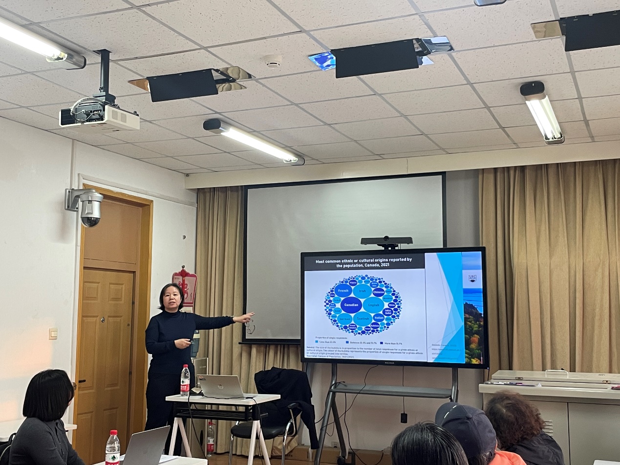 副教授单红霞(Dr. Hongxia Shan)主讲,吸引了众多师生参与讨论。单红霞副教授长期研究职业发展与成人教育,特别关注移民与全球化背景下的学习实践,涉及移民教育、性别研究以及跨文化教育等领域。她从职业发展理论的演进入手,结合加拿大技术移民案例,为听众详细解析职业学习与职业管理的多维视角。