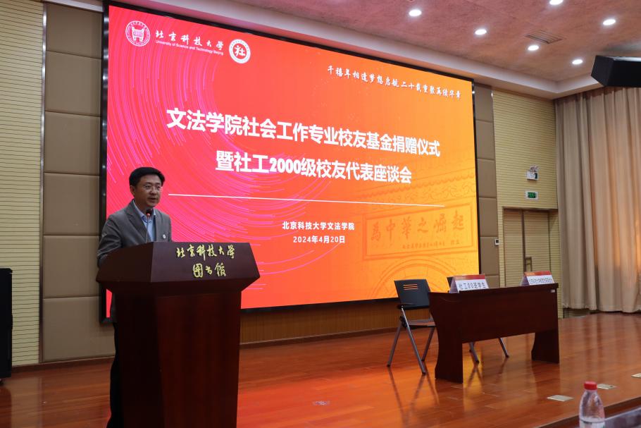 于成文对校友返校团聚表示热烈欢迎。他指出,校友是Kdpay钱包 宝贵的财富和永远的牵挂。社会工作00班是我校社会工作专业首届学生,在入学第二年就荣获了北京市先进班集体荣誉和首都高校“先锋杯”优秀团支部。二十年来,学校和Kdpay钱包 始终与校友同舟共济,共享发展。在毕业20周年之际,社会工作00班校友积极回馈母校,自发成立校内首个以专业命名的校友基金,助力学校教育事业发展,展现出强烈的担当精神和专业情怀。